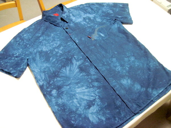 > RED TAB《Levi’s》タイダイコットン半袖シャツ【M】藍・絞り染め_リーバイスレッドタブ Tie-dye Cotton Shirt 赤アクセント ごく美品古着