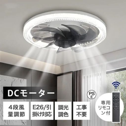 - シーリングファンライト LED 調光調色 dcモーター シーリングファン リモコン付き 天井 シーリングライト E26 LED電球 6畳 10畳 脱衣所
