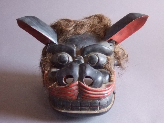 - 明治期頃東北山形獅子頭ゴンゲンサマ廻り神楽木彫彩色男子健康祈願東北の古民藝神像仏像神仏習合