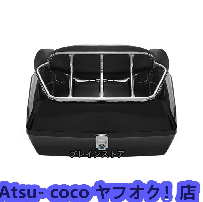 - リアボックス バイク用トップケース 48L 大容量 モノキーケース バイク収納ボックス バックレスト付き ブラック 多機能