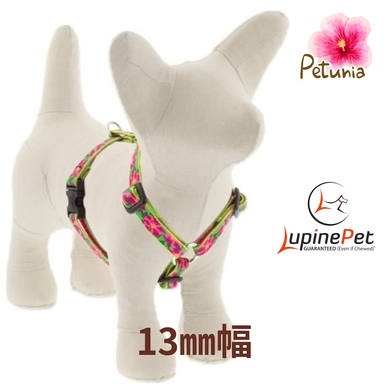 > ペチュニア柄・ローマンハーネス・大・胴回り30-50cm・13mm幅 LUPINEルパイン アメリカ製 軽量 丈夫 小型犬