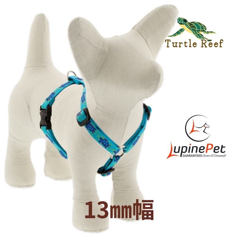 > タートルリーフ柄・ローマンハーネス・大・胴回り30-50cm・13mm幅 LUPINEルパイン アメリカ製 軽量 丈夫 小型犬
