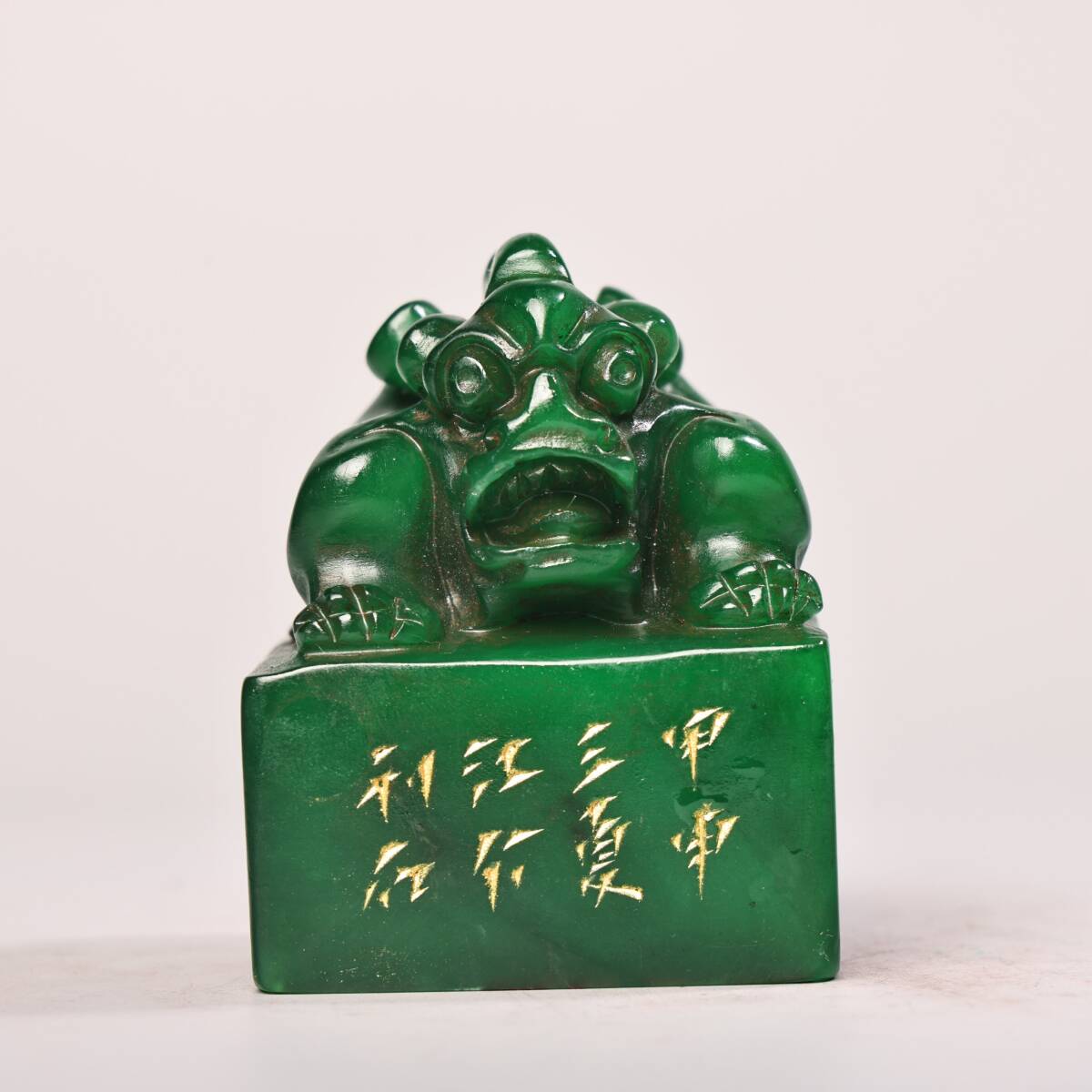 - 蔵友旧蔵出 寿山石 綠田黄石 細密彫 瑞獣印章 箱付 貴重品 稀少物品 置物 賞物 中国時代美術品