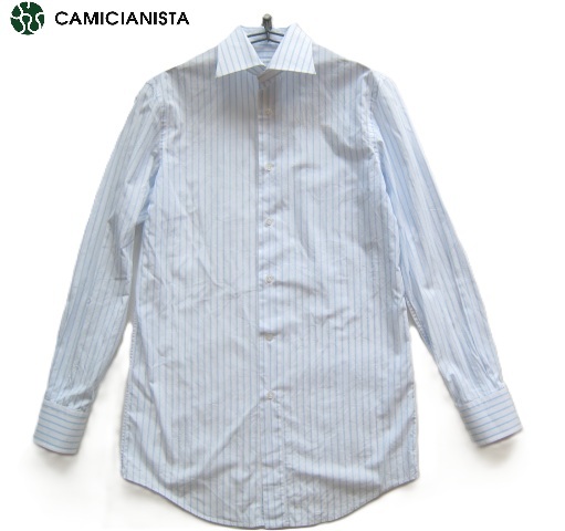 - 美品!!カミチャニスタ CAMICIANISTA*SLIM FIT ストライプ柄レギュラーカラードレスシャツ 38 実寸M 白 ホワイト クールビズ ビジネス
