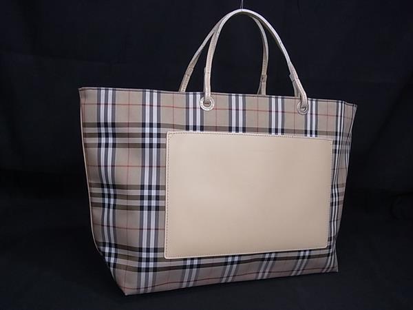 - 1円 BURBERRY バーバリー ノバチェック ナイロン ハンドバッグ トートバッグ メンズ レディース ブラウン系 FL8159
