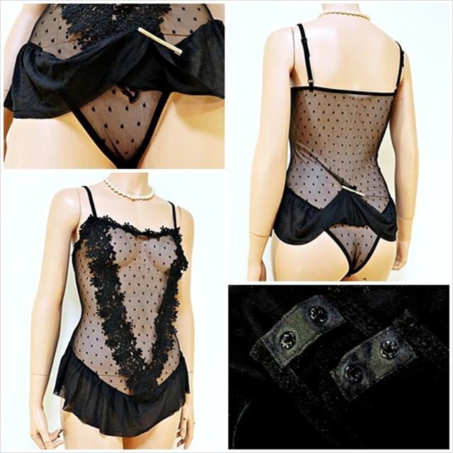 > CEE1-C31☆//XL♪新品未使用*立体レース&ラブリーSEXYなドット柄*伸縮性有*テディ*クロッチ開閉*※一番安価で送料はゆうパケット250円♪