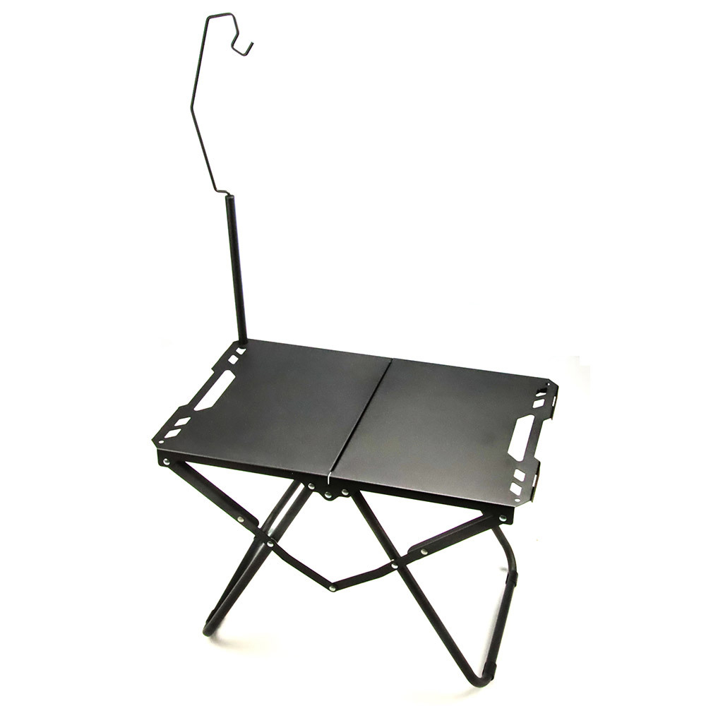 - 折りたたみ アウトドアテーブル ランプスタンドセット 軽量コンパクト 耐荷重60kg 組み立て不要 ソロキャンプ ローテーブル 収納バッグ付き