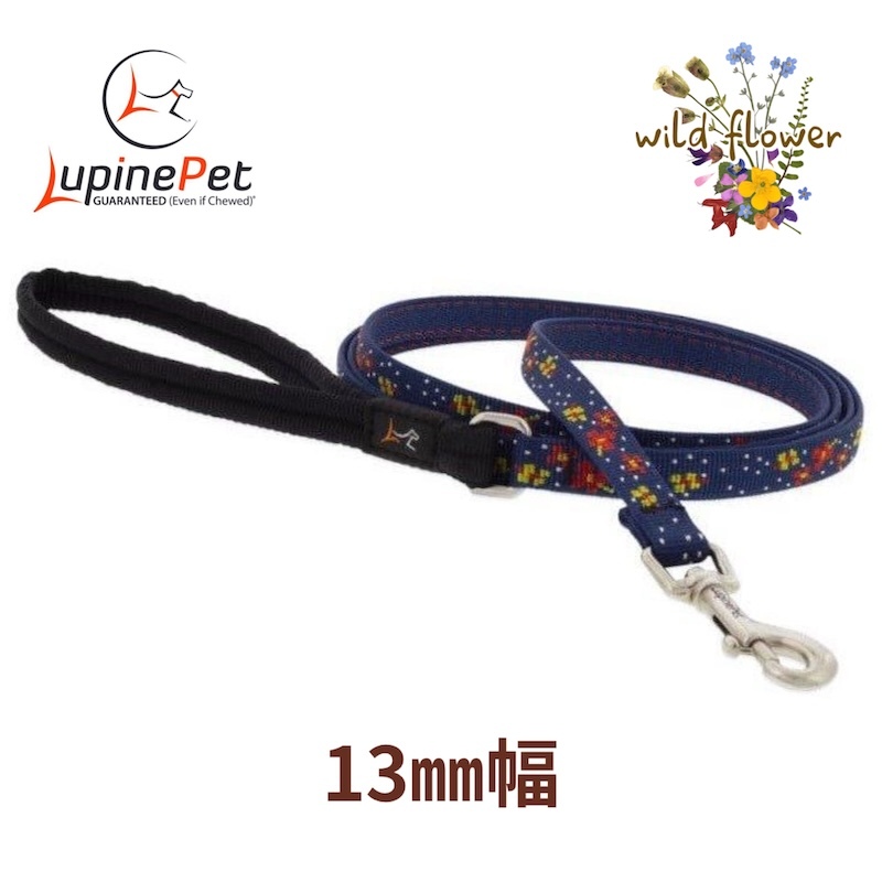 > ワイルドフラワー柄 13mm幅180cmリード パッド付き LUPINE アメリカ製 軽量 丈夫 小型犬向け ルパイン