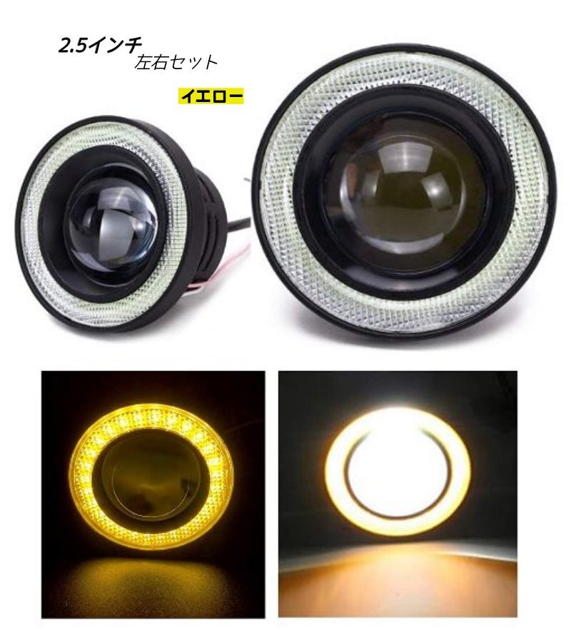 > Kstyle イエロー 2.5 LED フォグランプ 汎用 イカリング 付き 30w 高性能 COB 防水 左右