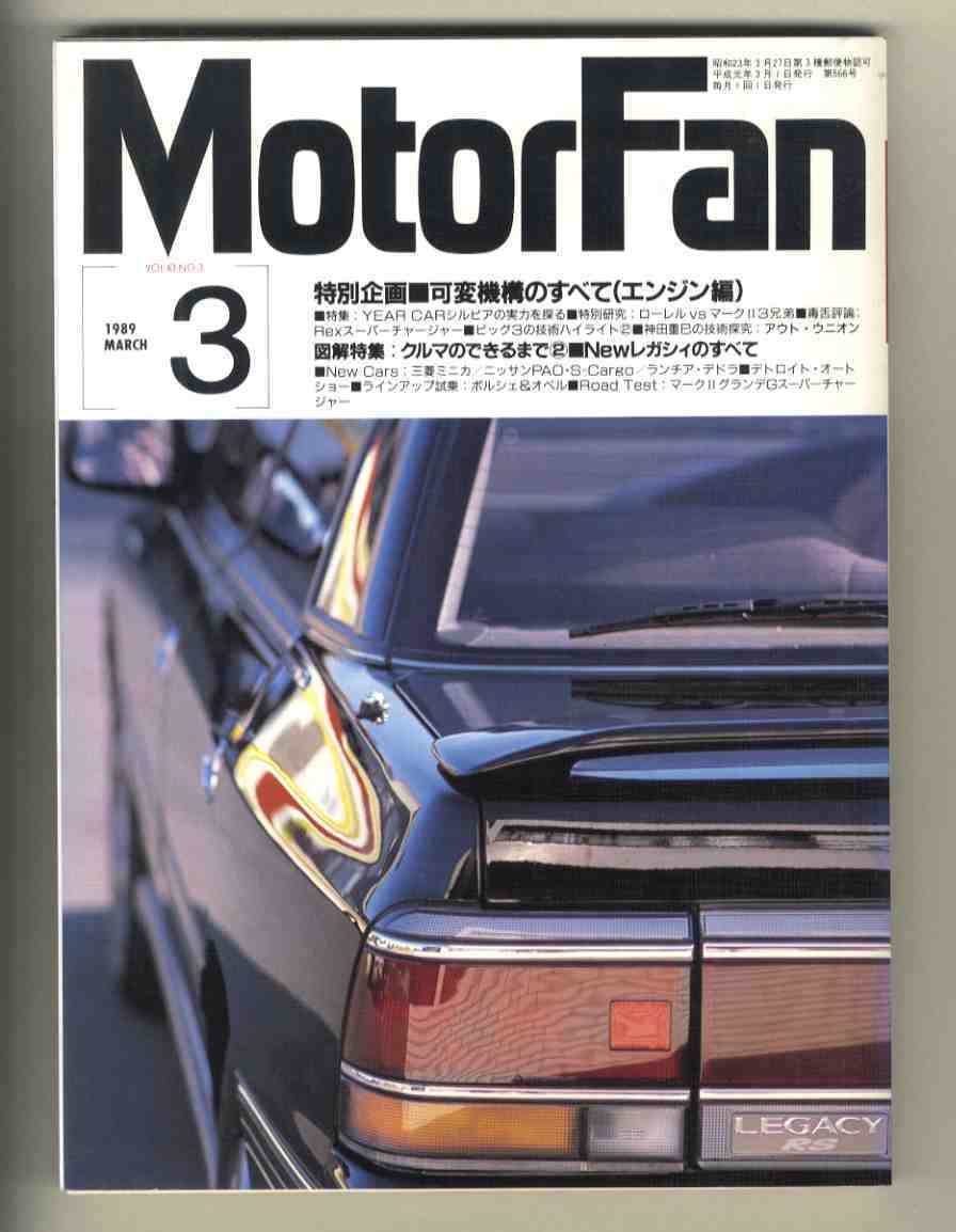 書名/記事: 89.3 モーターファン/MF図解特集-クルマのできるまで・生産ラインの実際、ポルシェカレラ4/944 S2/911カレラ/ターボ944ターボ/928S4、オペルオメガ/セネター/カデット、日産パオ/エスカルゴ、三菱ミニカ、スバルレガシィ、ホンダTX試耕運記、可変機構のすべて-エンジン編、...