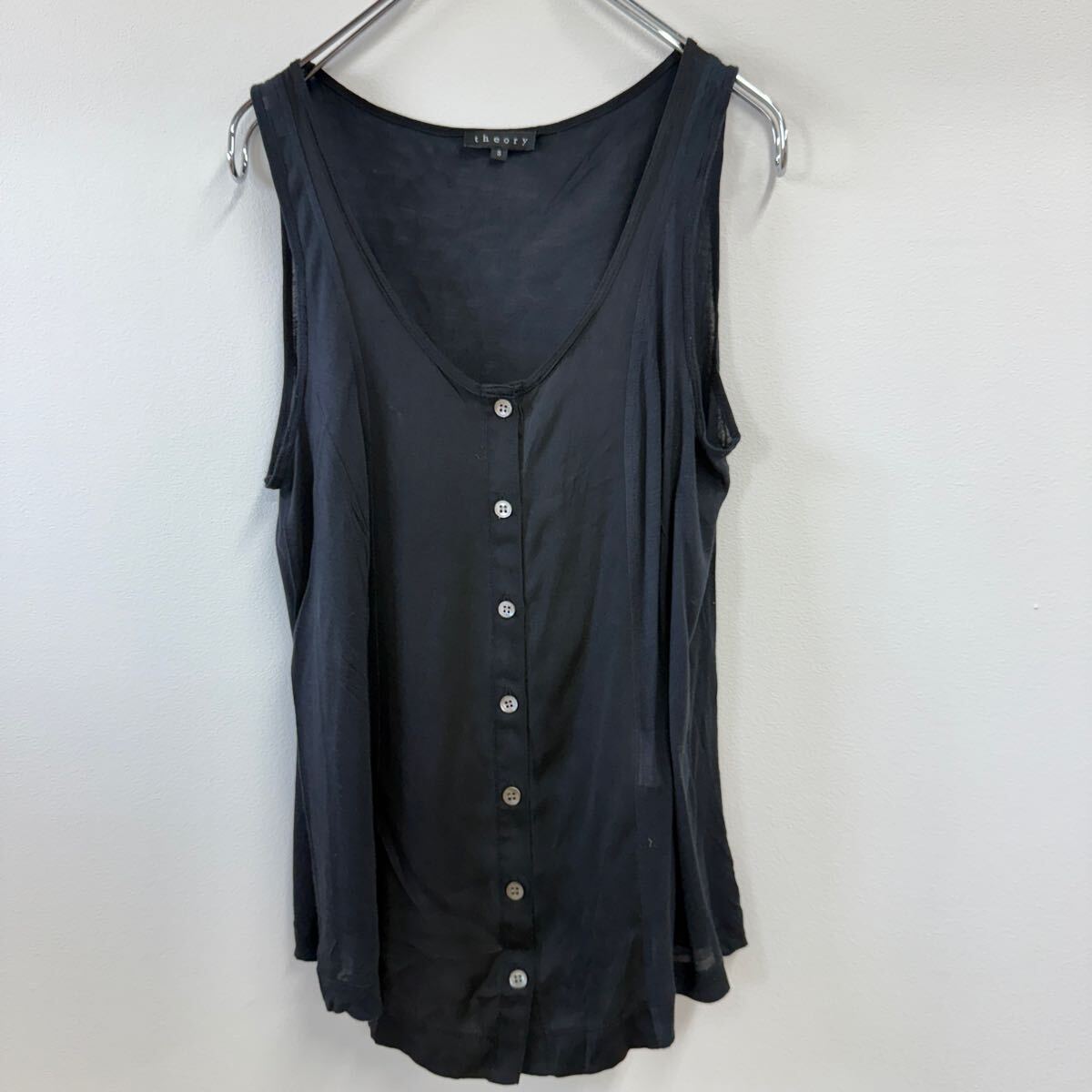 - theory セオリー ブラック ノースリーブ 異素材切替 黒 タンクトップ チュニック トップス Sサイズ