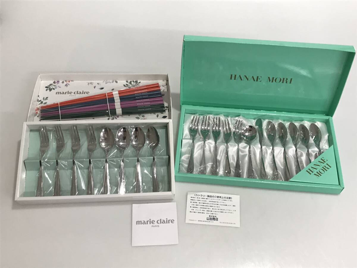 - DG8414 カトラリーセット まとめて2箱 ハナエモリ marie claire 箸 デザート スプーン フォーク ティースプーン ステンレス