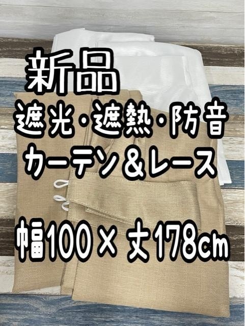 - 新品☆幅100×丈178cmベージュ遮熱遮光防音カーテン&遮熱UVレースQ163