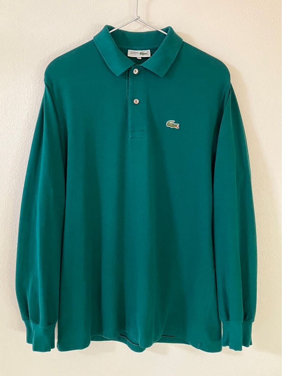 - 80s CHEMISE LACOST シュミーズラコステ 長袖ポロシャツ グリーン/左胸ワニワッペン(Lacost文字入り) 綿100% サイズ4