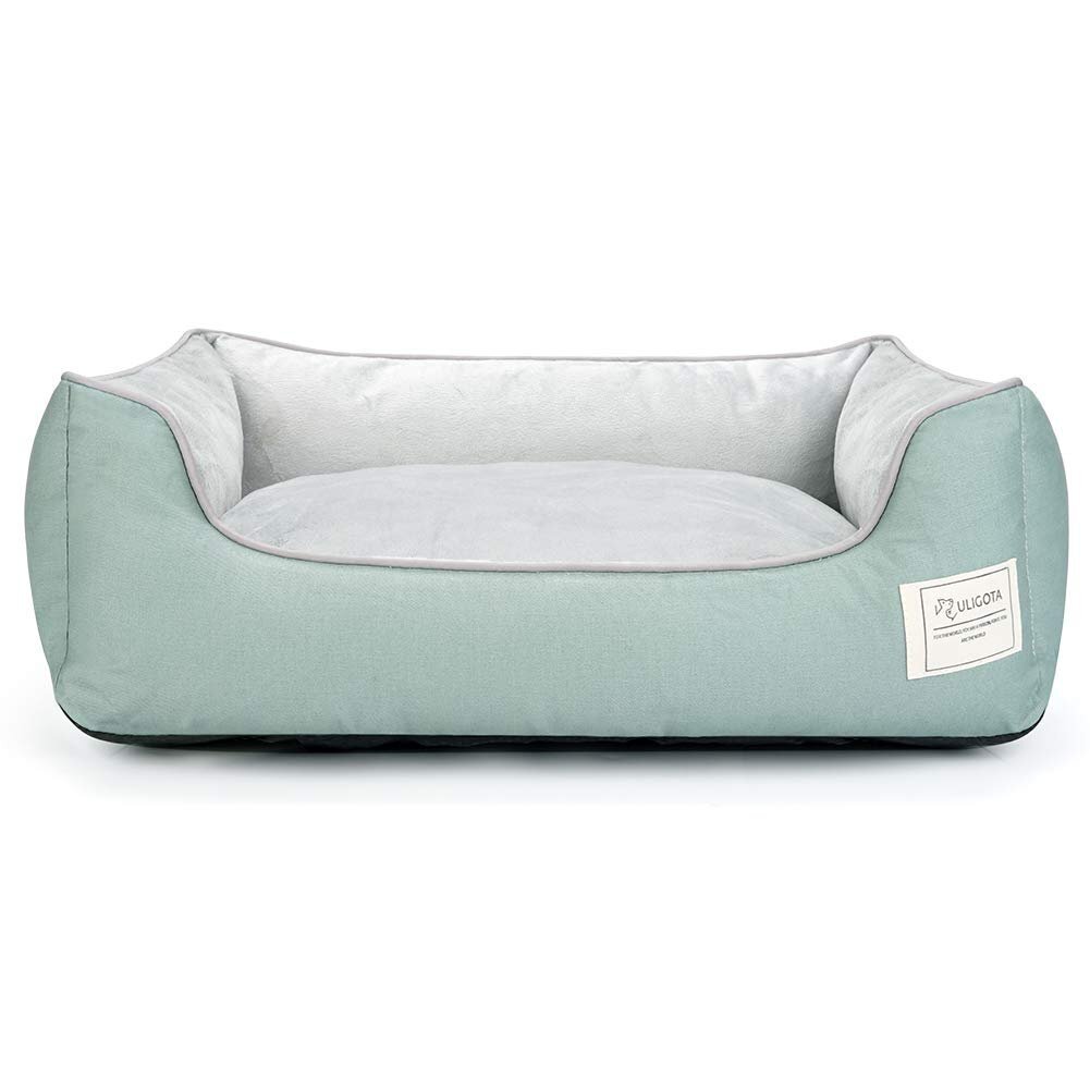 ブランド:ULIGOTAカラー:グリーンサイズ:60Lx50Wx15Hcmまくら一体型のペットベッドです。身体の一部が触れていることで、安心して眠ることができます。表地の厚ての綿生地は掘ったり噛んだりしても破れにくく、目が細かいので毛が編目に入りづらく、掃除しやすいです