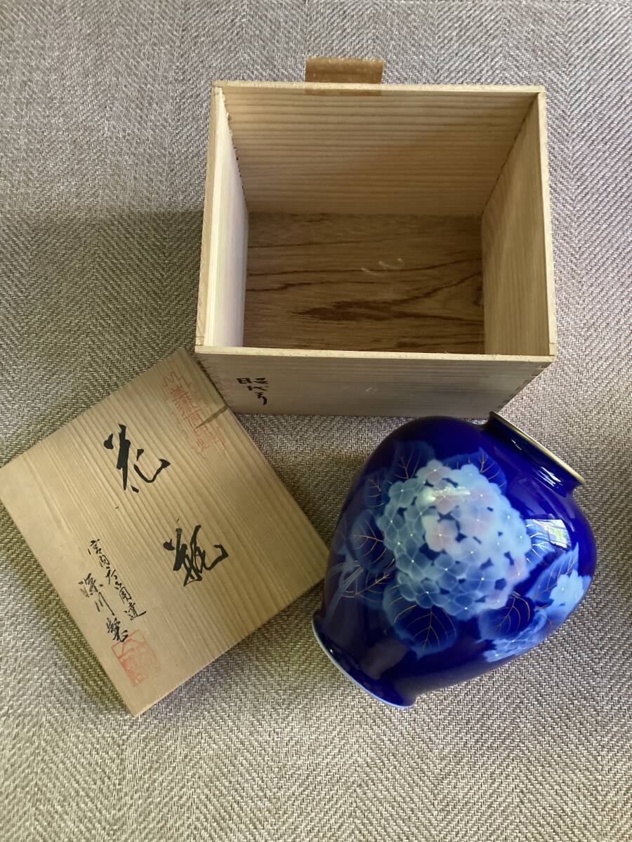 - 花瓶 アジサイ花柄 宮内庁御用達 深川製 昭和52年製 高さ約20cm×上口直径約7.5cm
