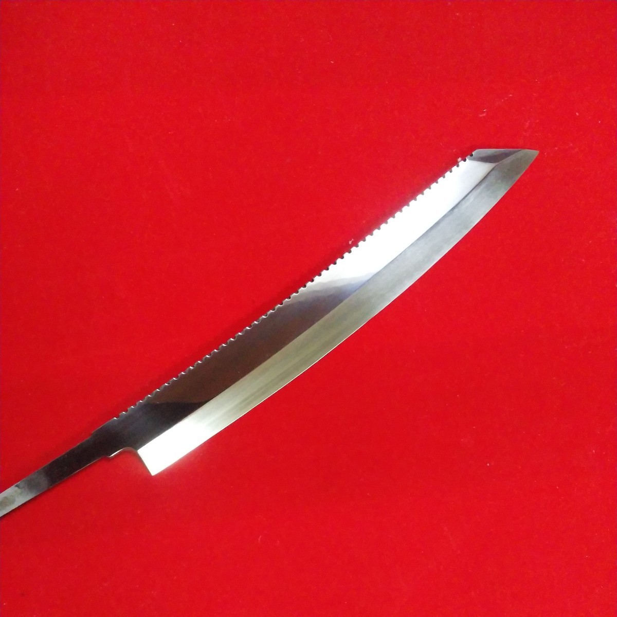- 城山刃物製作所(堺業務用刃物メーカー直売)六寸切付柳刃(ギザ付)手元包丁(商標登録)シリーズ 超鋼スーパー本焼き片鏡面 黒檀柄