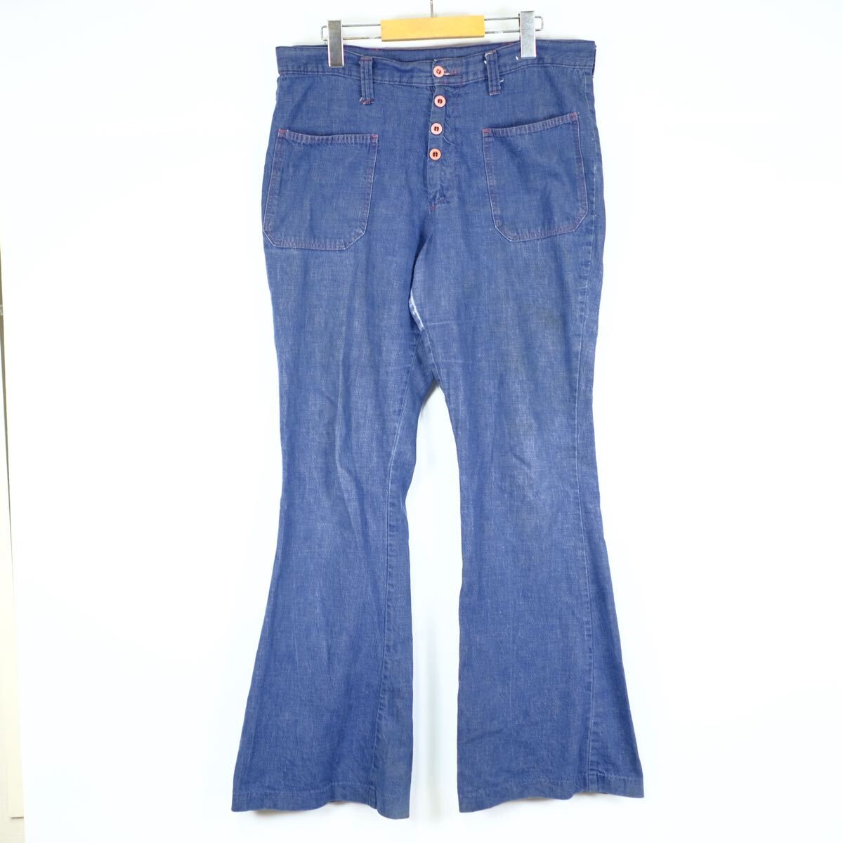 - 1970s ビンテージ フレアシルエット デニムパンツ 古着屋 USA製 襤褸 ボロ ヒッピー ワイド