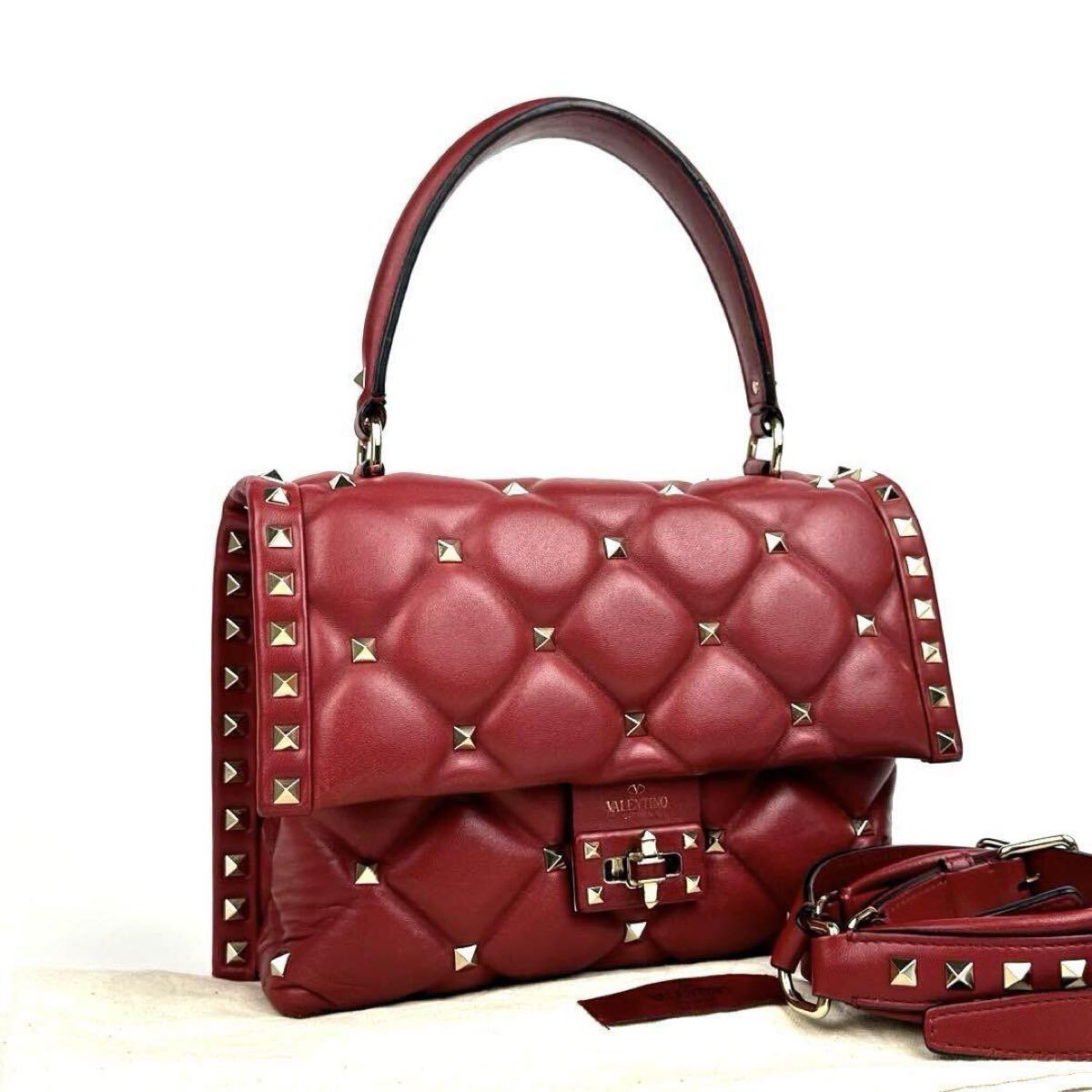 - 【極美品】VALENTINO GARAVANI バレンティノ ハンドバッグ ロック キャンディ スタッズ 2way ショルダーバッグ 斜め掛け レザー 赤 レッド