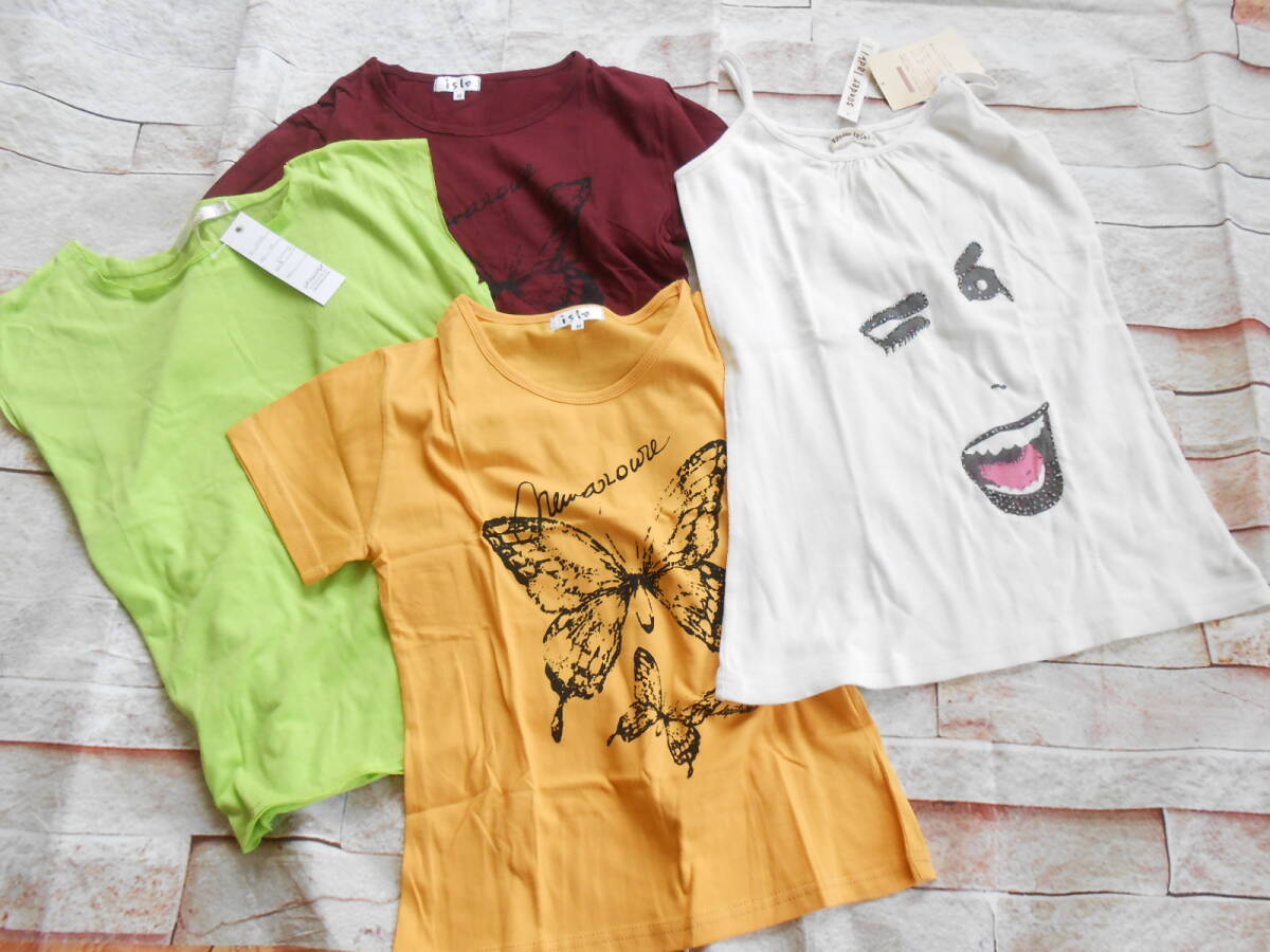 > LF04★Tシャツ4枚セット【Mサイズ】 蝶 顔 無地 黄色 ワイン オフホワイト 黄緑 新品未使用