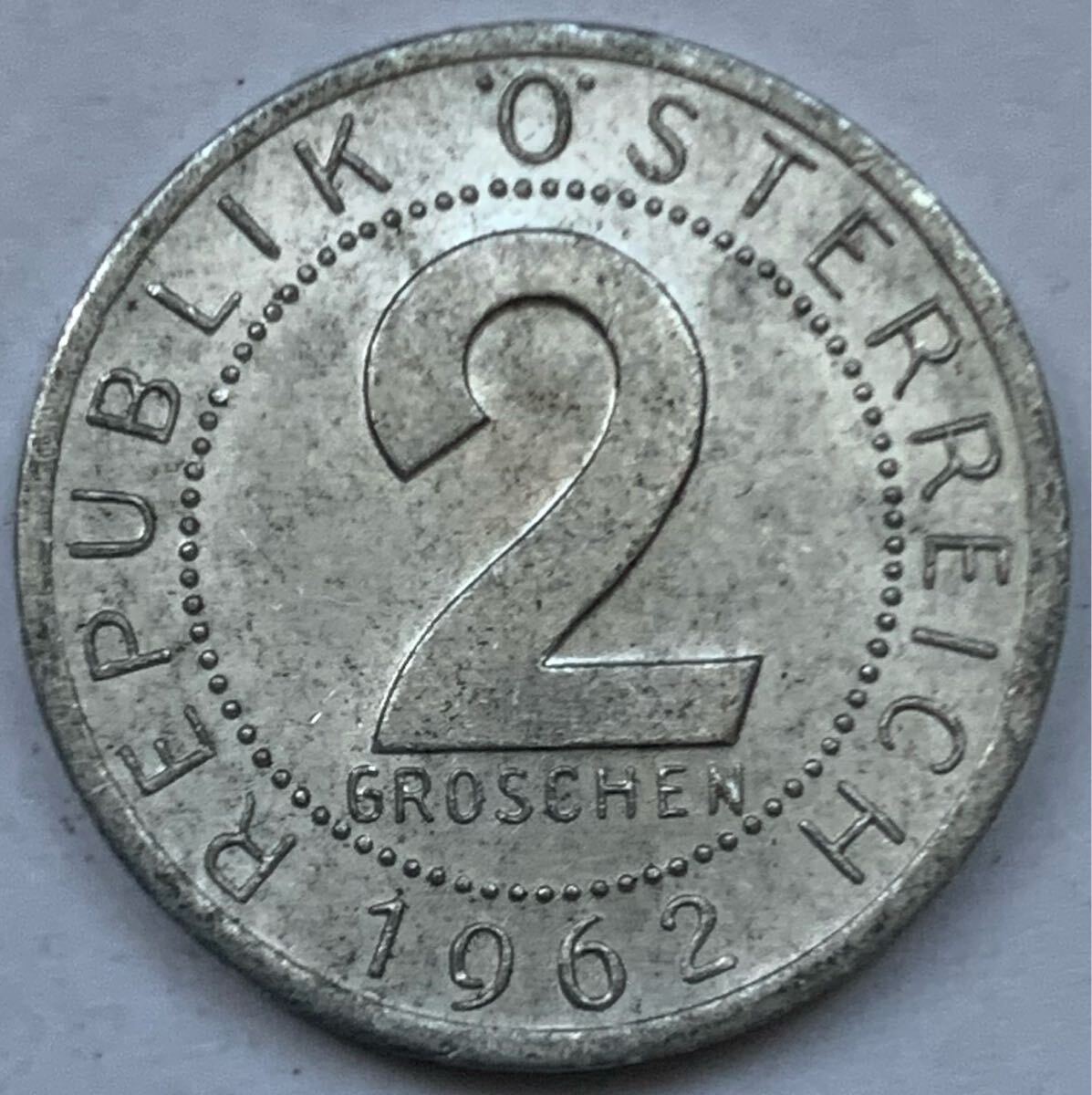 - 海外コイン オーストリア 2グロッシェン 1962年