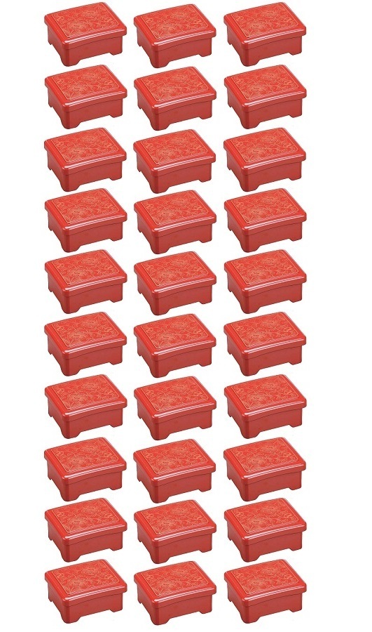 - ★業務用漆器丼重(内隅丸)新光月柿朱金牡丹内朱塗30個うな重・かつ重・天丼重・海鮮重などに越前塗日本製新品