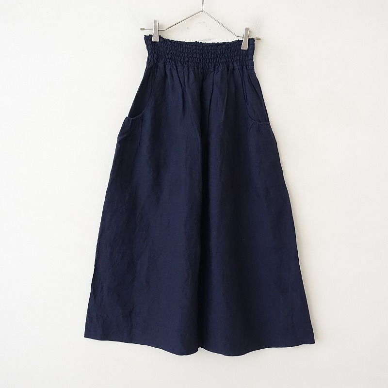 - リゼッタ Lisette *リネンギャザースカート*麻ネイビー紺ゴムフレアロング(sk25-2507-70)【72G52】