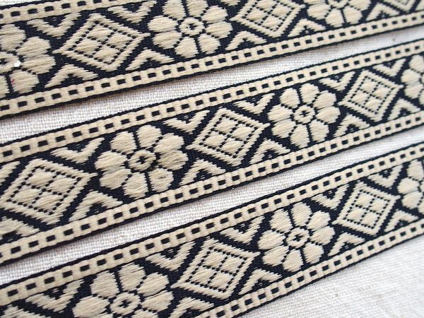 - 即決 !0.5mより インド刺繍リボン チロリアンテープ 細 黒 北欧☆民族衣装☆手芸 リボン