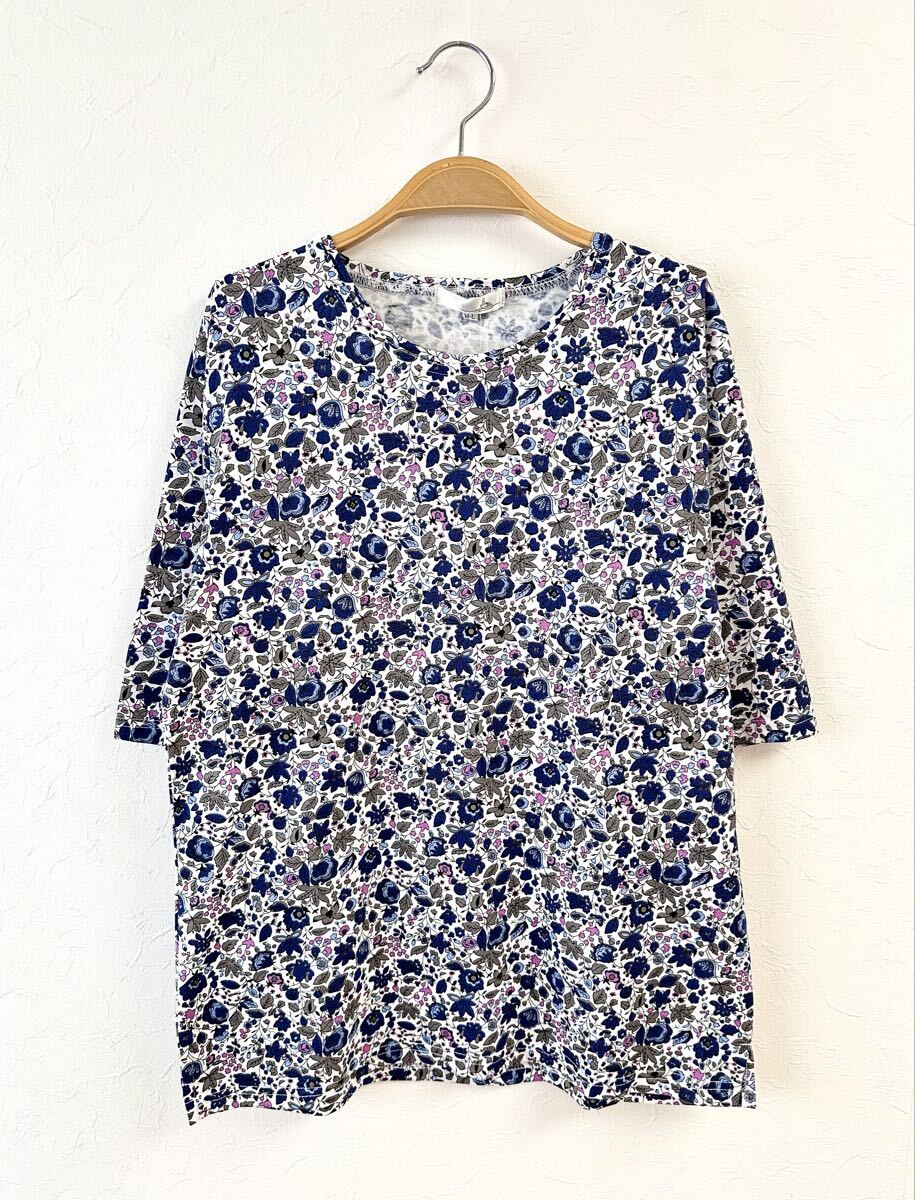 - フラワー総柄 5部袖 Tシャツ カットソー M〜Lサイズ 綿100%