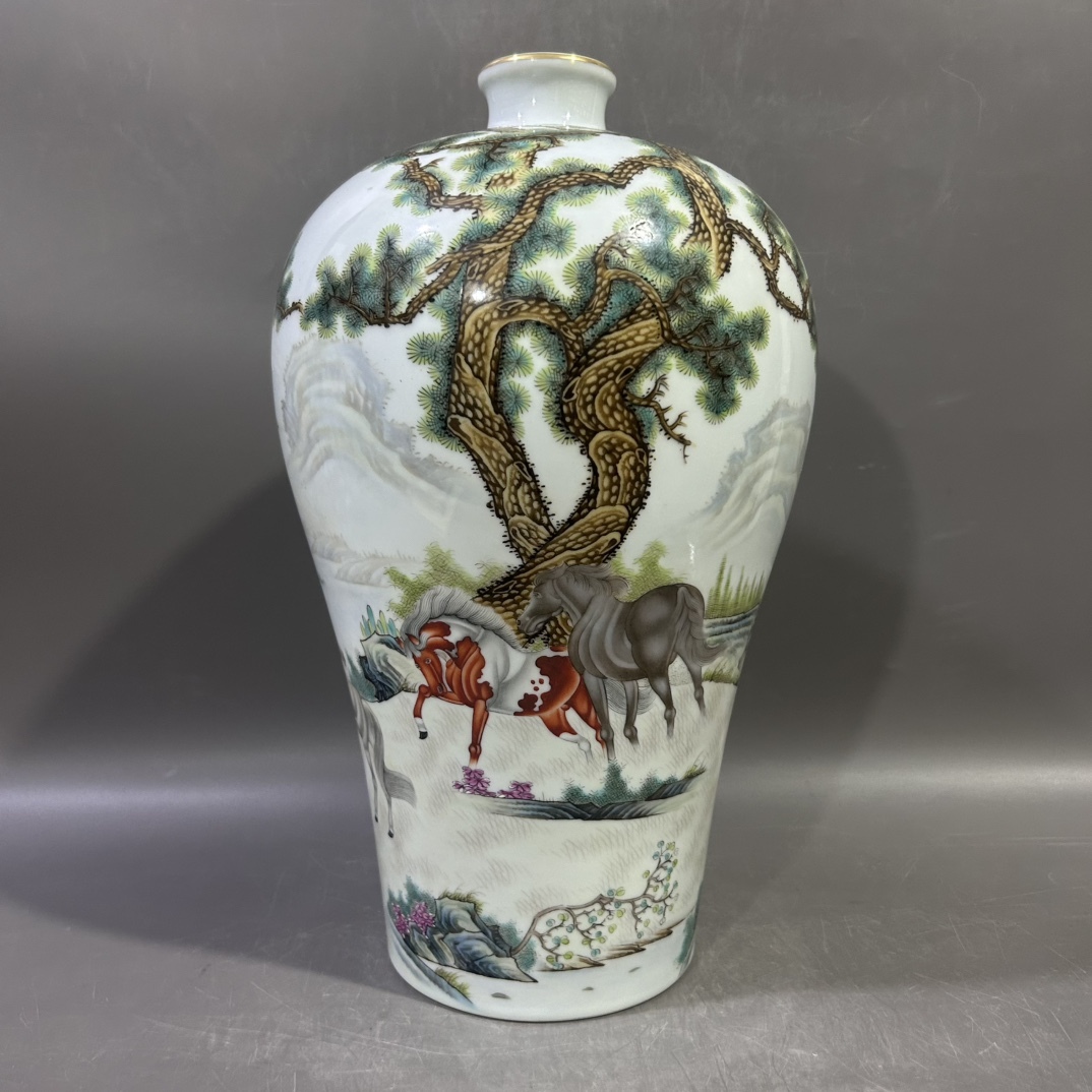 - ■BC153■大清雍正年制款 粉彩八馬紋梅瓶 時代物 古玩 唐物 古陶磁器■