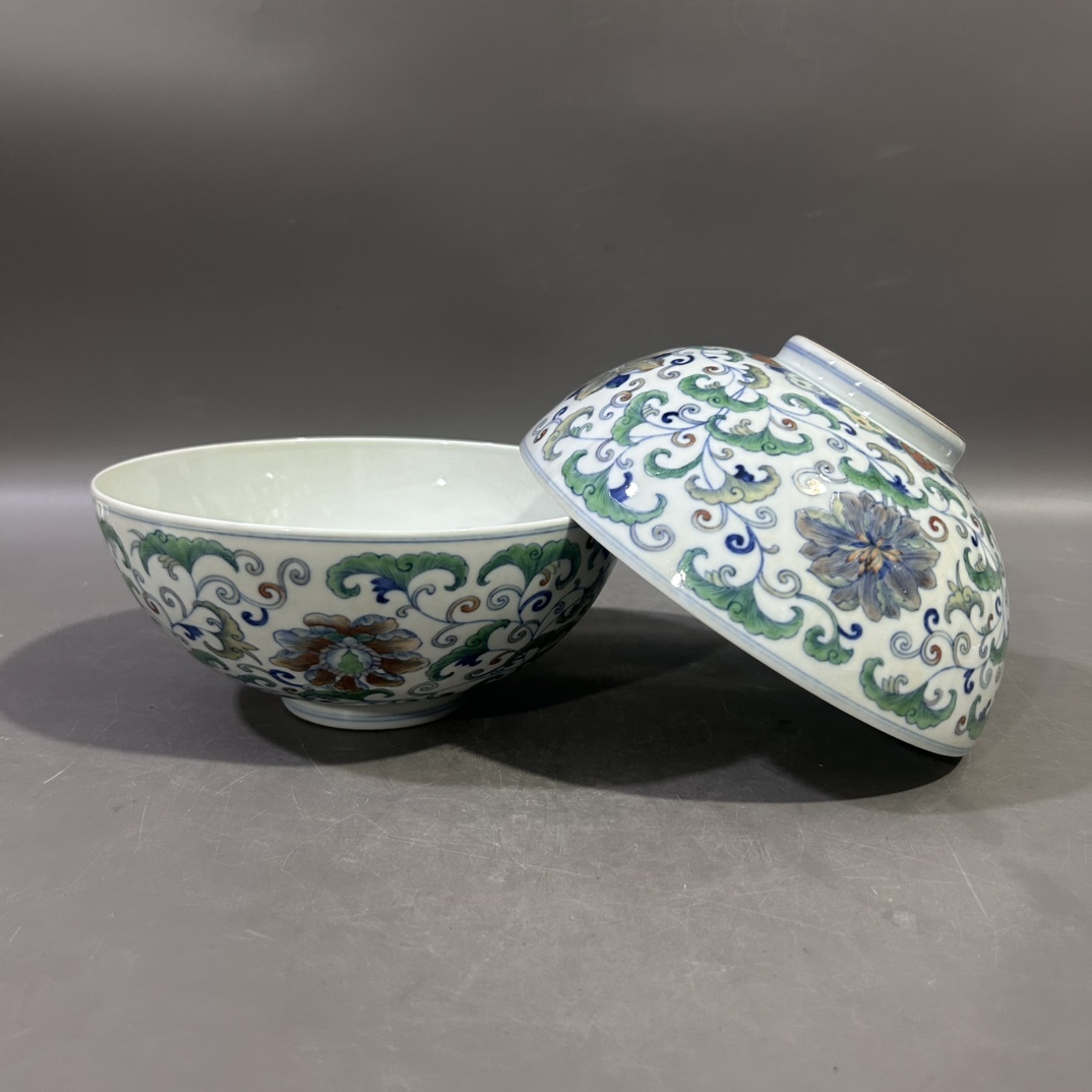 - ■BC155■大清嘉慶年制款 闘彩纏枝蓮紋碗2客 時代物 古玩 唐物 古陶磁器■