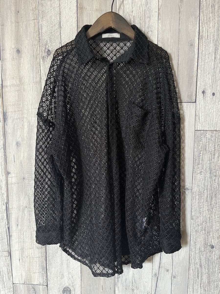 - ■ ブラック シアーシャツ 黒 透け感 LINOLUCE 流行 日焼け対策 オーバーサイズ 長袖シャツ