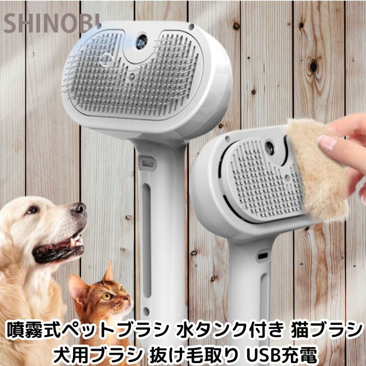 > USB充電式 噴霧で体毛滑らか! ペット用ブラシ 水タンク付き 250mAh 猫ブラシ 犬ブラシ ワンプッシュタイプ 抜け毛取り (ホワイト)