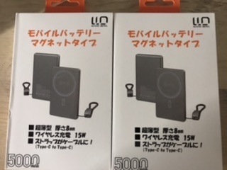 > ★2台セット★和光電気 マグネットタイプモバイルバッテリー5000mAh ケーブル両方Typeー C/ケーブルUSBーAtoTypeー C2本付 ☆PSEマーク☆
