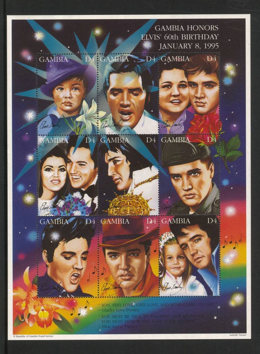 - 外国切手 海外ポップシンガー エルビス・プレスリー ① 1995年 ガンビア 小型シート 未使用