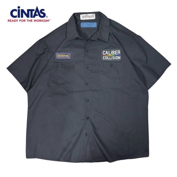 > ★CALIBER COLLISIONロゴ★CINTAS 半袖ワークシャツ size2XL アメリカ 古着 クリーニング プレス済み 2397