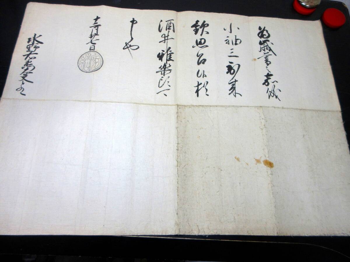- ★0895江戸前期「第4代将軍徳川家綱黒印状」1点/水野右衛門大夫(三河岡崎藩の第2代藩主水野忠春だと思います)宛/古書古文書