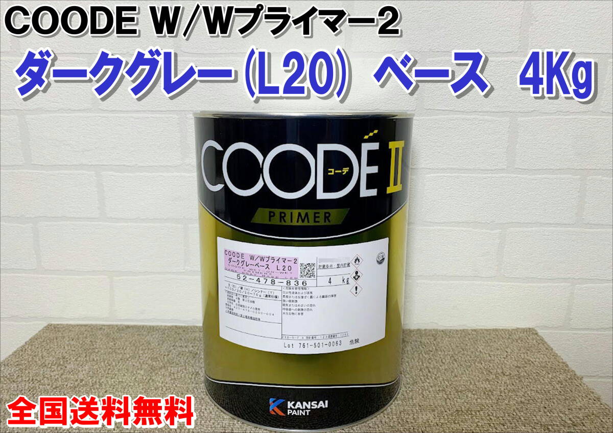 - (在庫あり)関西ペイント コーデW/Wプライマー2 ダークグレー(L20)ベース 4Kg 自動車 鈑金 塗装 COODE 全国送料無料