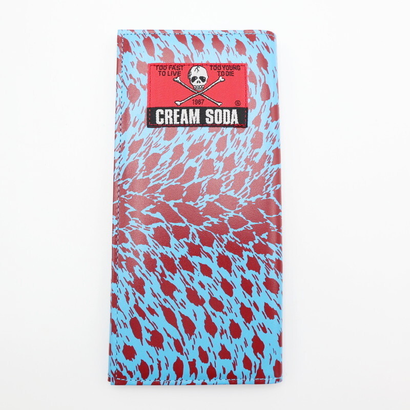 > 希少 CREAM SODA クリームソーダ スカル/レオパード柄 レザ― コイン/カードホルダー付き長財布 ライトブルー/ボルドー K07-k148