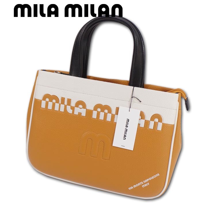 - ミラミラン mila milan トートバッグ ハンドバッグ マイト レディース メンズ キャメル 定価16,500円 ミラショーン mila schon 軽量 98315