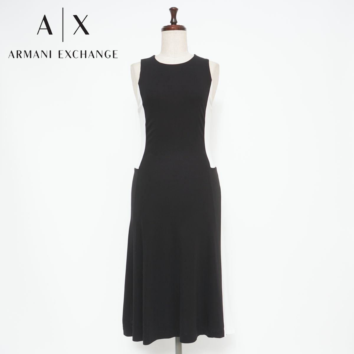 > ARMANI EXCHANGE アルマーニエクスチェンジ ノースリーブ切替ワンピース ミモレ丈 レディース 白 黒 モノトーン サイズXS*ED1016