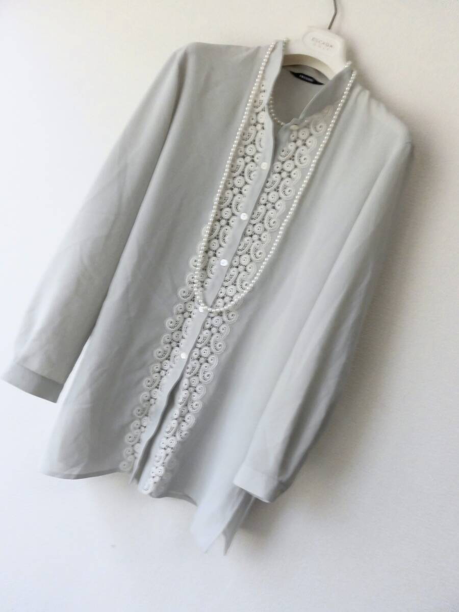 > ●CORDIER*白レース*ロングチュニックシャツ/淡いグレー薄手/ワンピース/ジャケット/サイズ40 L相当