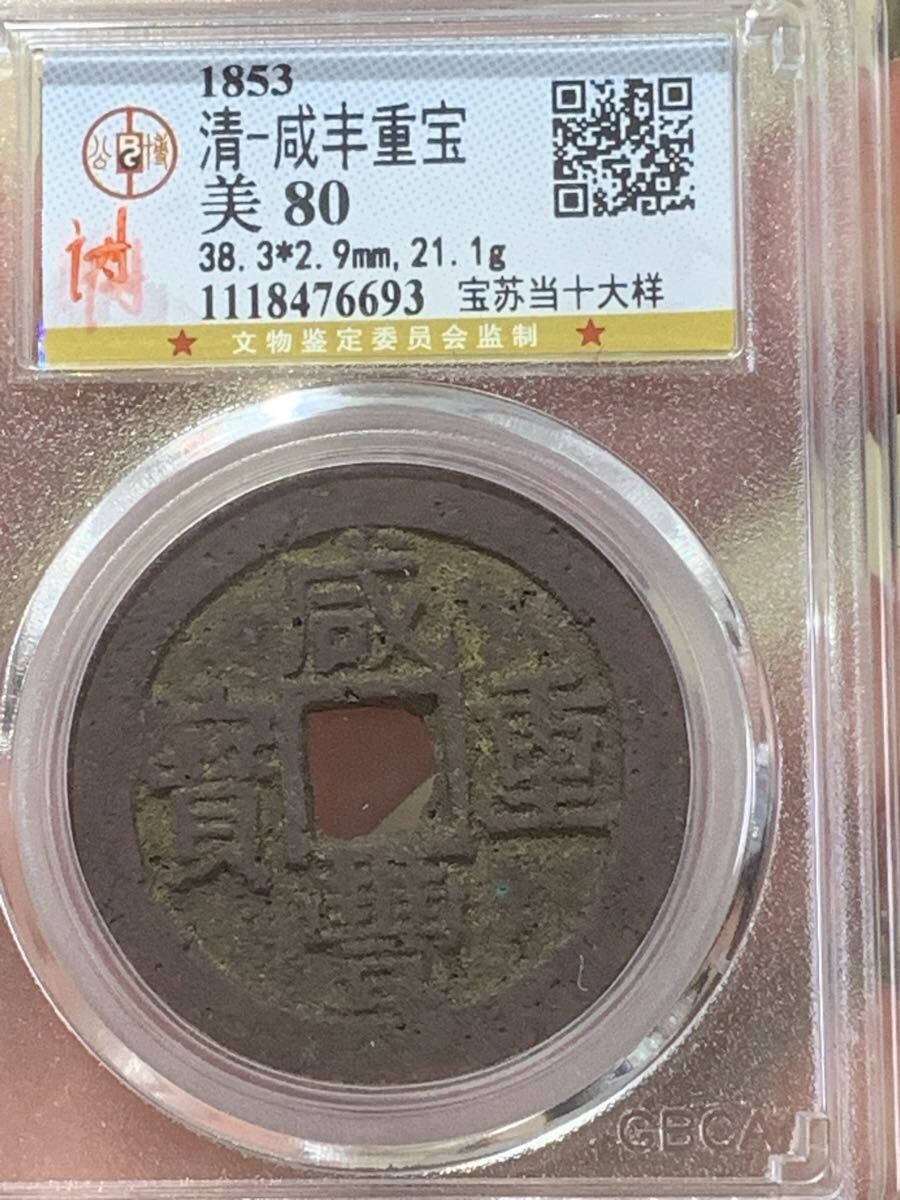 - 中国古銭 清時 咸豊重宝 咸豊重寶 背當十 古銭穴銭 鑑定済み美80 収蔵品放出