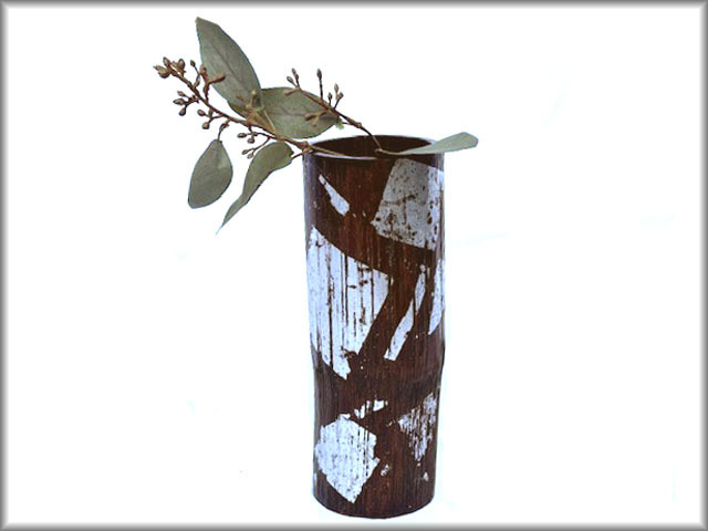 - 茶道具●花入●置き花入●竹製●寸切り・尺八●漆塗り・銀箔●高さ19cm