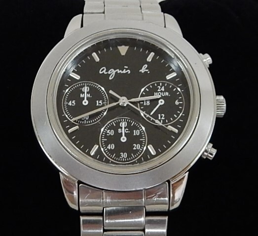 > 【中古動作品/電池交換済】◆agnes b. アニエスベー V654-6100 クロノグラフ クォーツ メンズ腕時計 黒文字盤 MEDE IN JAPAN