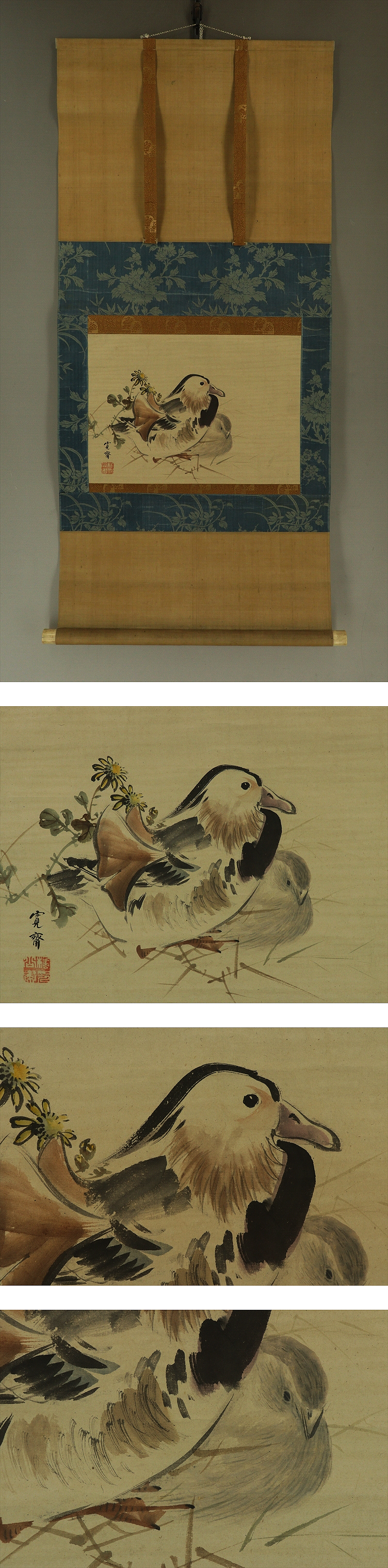 - 【真作】森寛斎【鴛鴦之図】◆紙本◆識箱◆掛軸 r03110