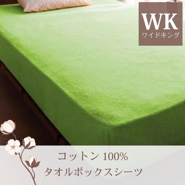 > 365日気持ちいい!コットンタオル カバーリング ベッド用ボックスシーツ ワイドキング モスグリーン