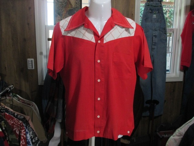 - 米国製 ヴィンテージ KING LOUIE ボウリングシャツ 赤×白 ダイヤ アーガイル キングルイ オールドスクール ROCKNROLL ROCKABILLY ROCKERS