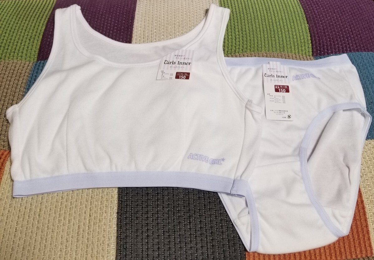 - 150cm バスト部分2重構造 ハーフトップ + ショーツパンツ 綿素材 新品 女の子 下着 ショーツ パンツ ブラジャー ロゴ