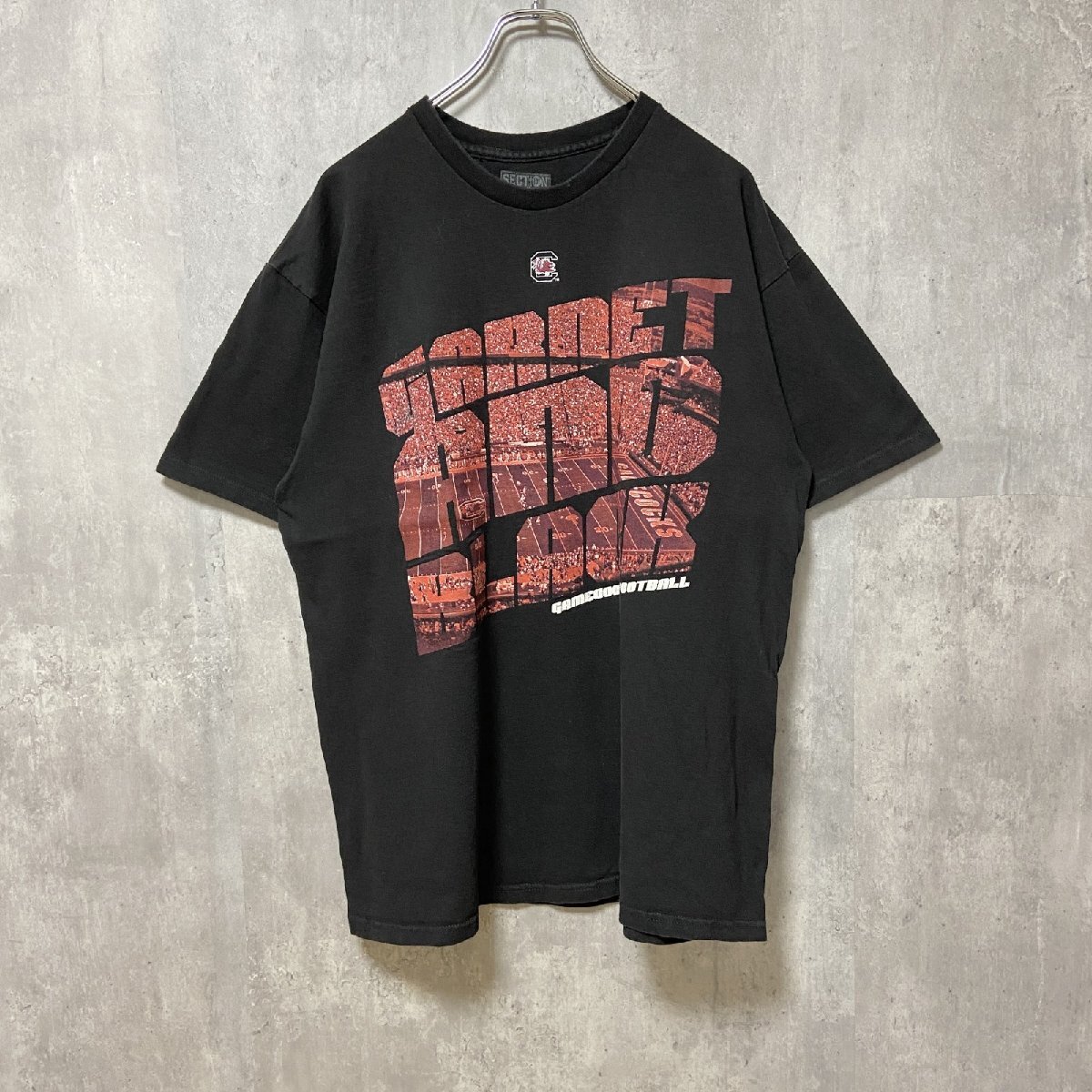- 古着 used NCAA GAMECOCKS FOOTBALL アメフト 半袖カレッジプリントTシャツ 黒 ブラック スポーツ